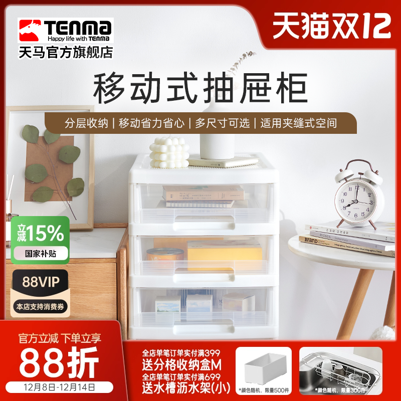日本天马Tenma抽屉式办公收纳柜置物柜多层收纳盒窄柜子可移动
