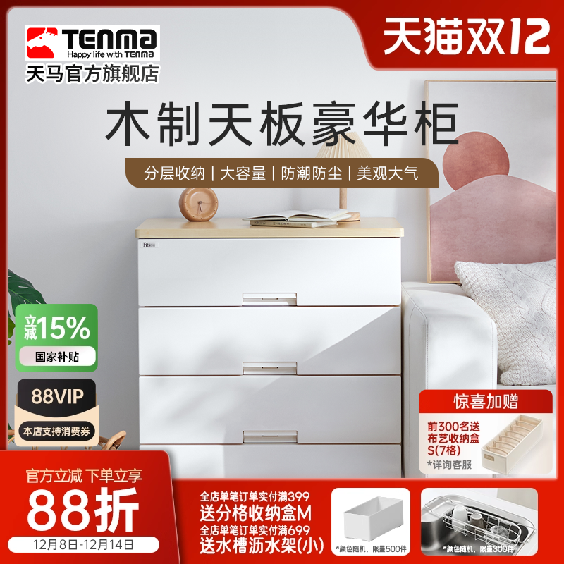 Tenma天马抽屉豪华收纳柜木质顶板多层整理家用客厅储物柜五斗柜