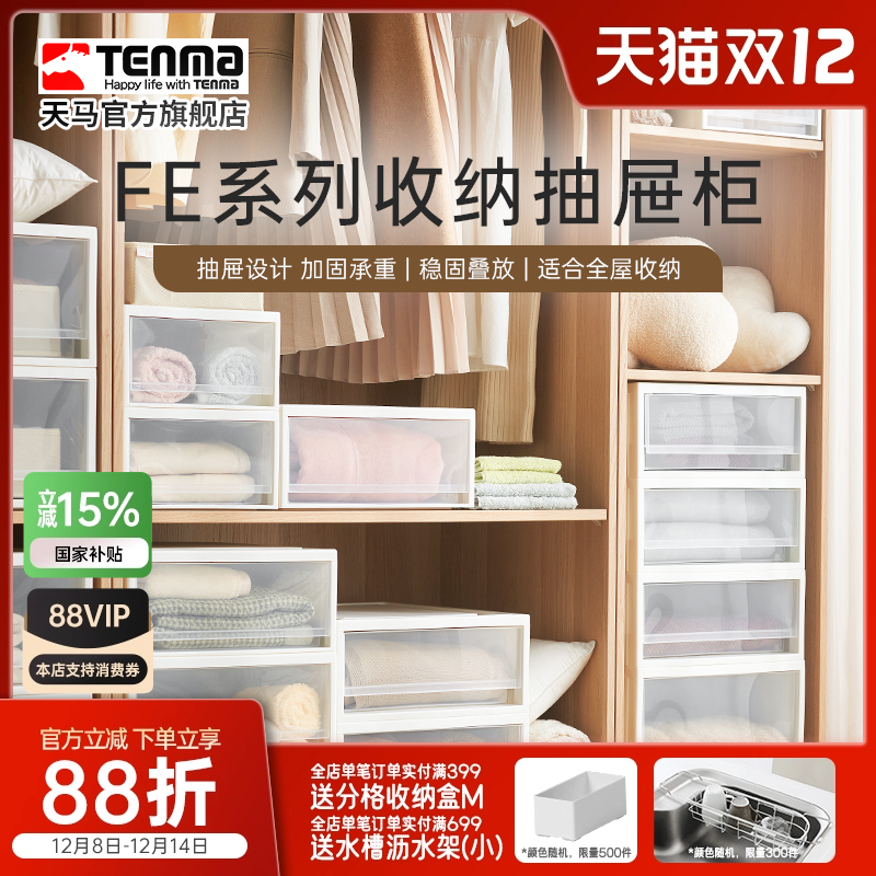 Tenma天马抽屉柜抽屉式收纳箱衣物整理箱储物盒衣柜内衣收纳盒