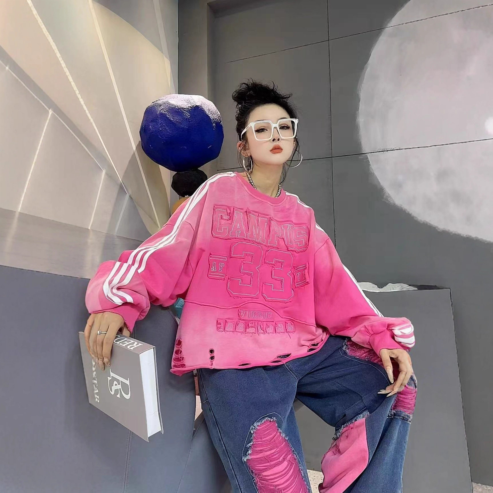宽松破洞卫衣女套头排行榜