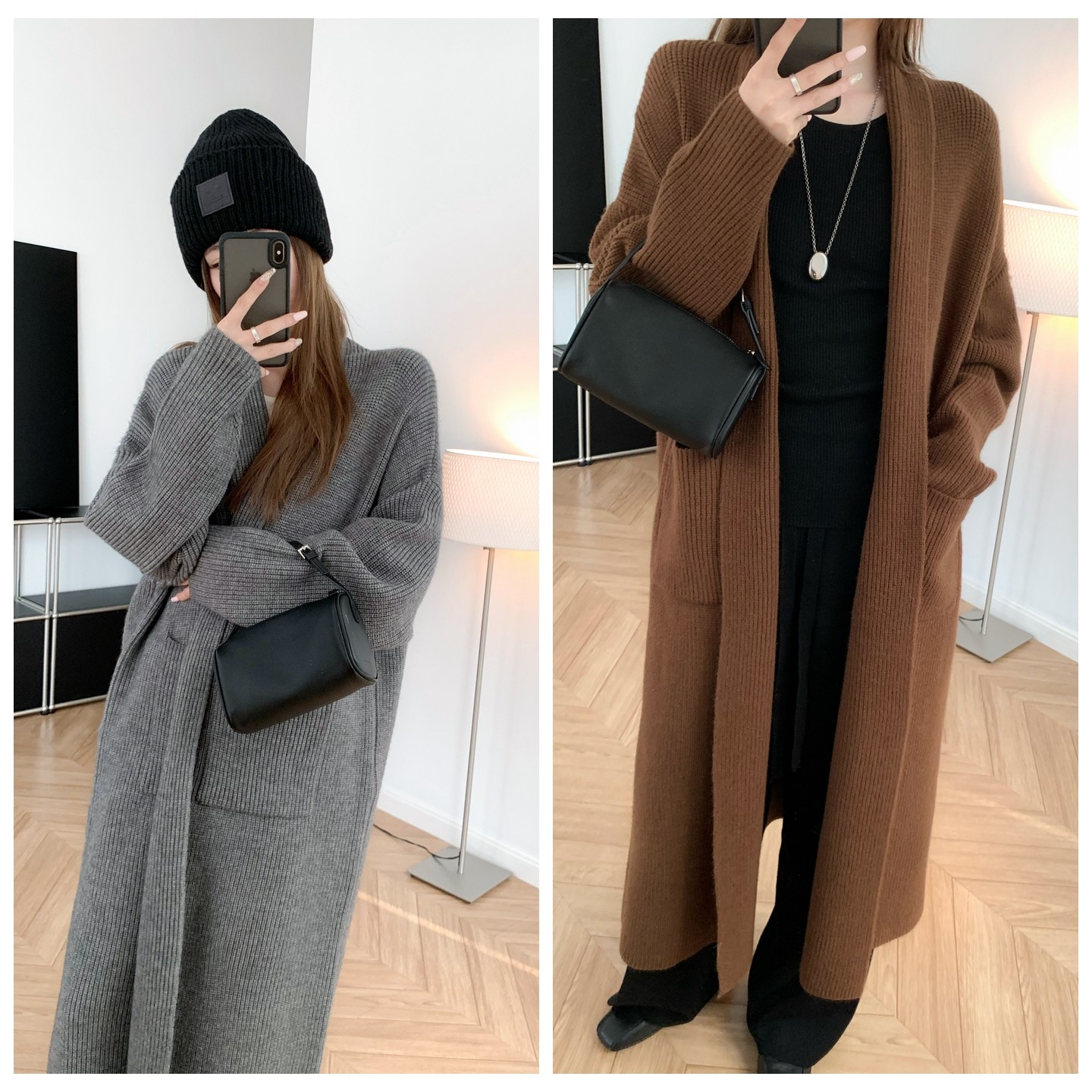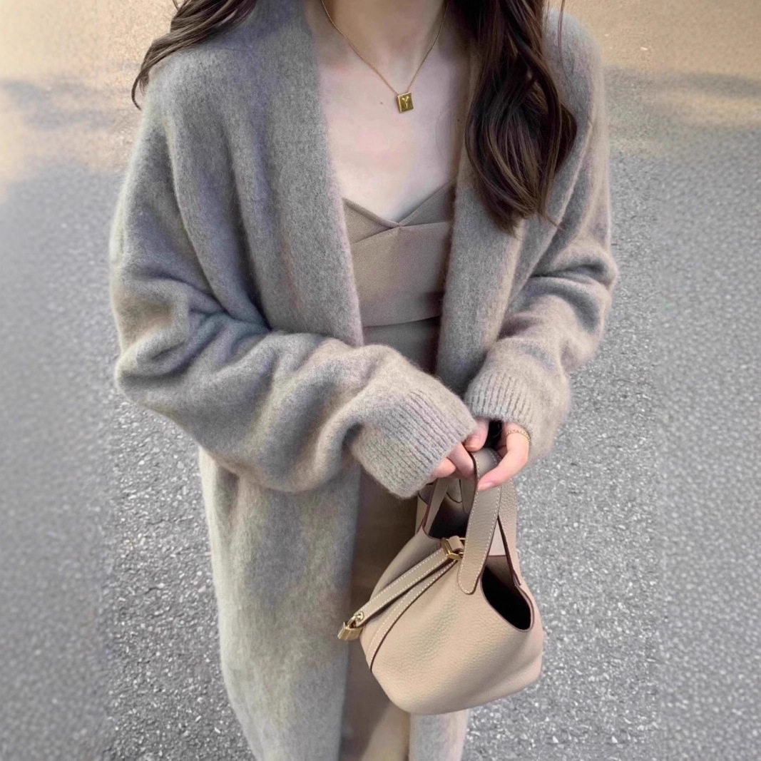 - 韩版针织外套中长款