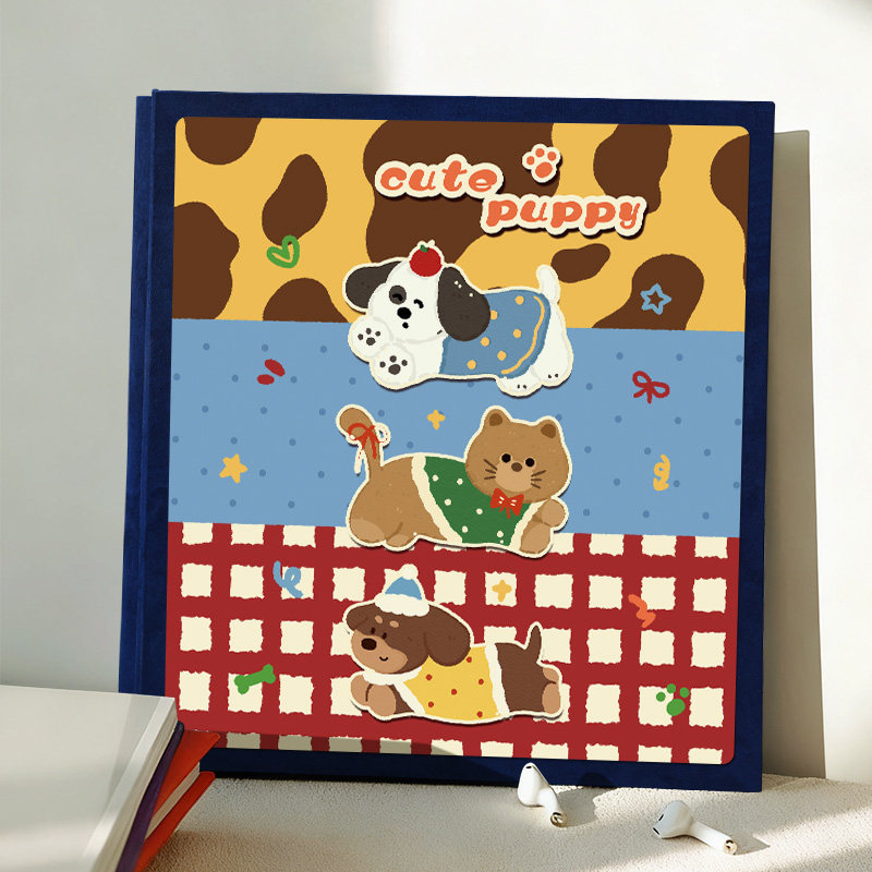 线条小狗diy情侣相册本自粘式覆膜纪念册拍立得照片收纳6寸5寸347