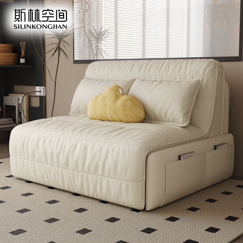 奶油风小户型客厅可折叠沙发床两用单人网红款电动沙发床2026新款