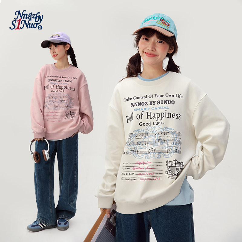 诺诺公主S1N初中生套头卫衣女2026春韩版字母宽松显瘦青少年上衣