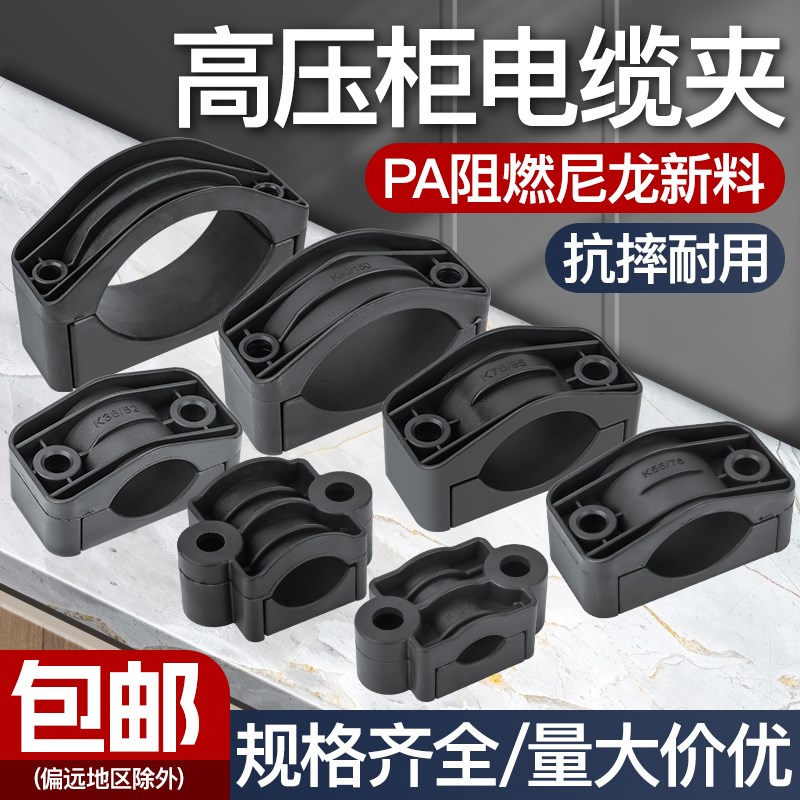 高压柜电缆夹单三芯电缆线固定夹吊塔线防火阻燃尼龙电缆抱箍管卡