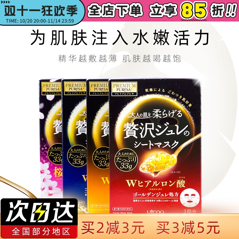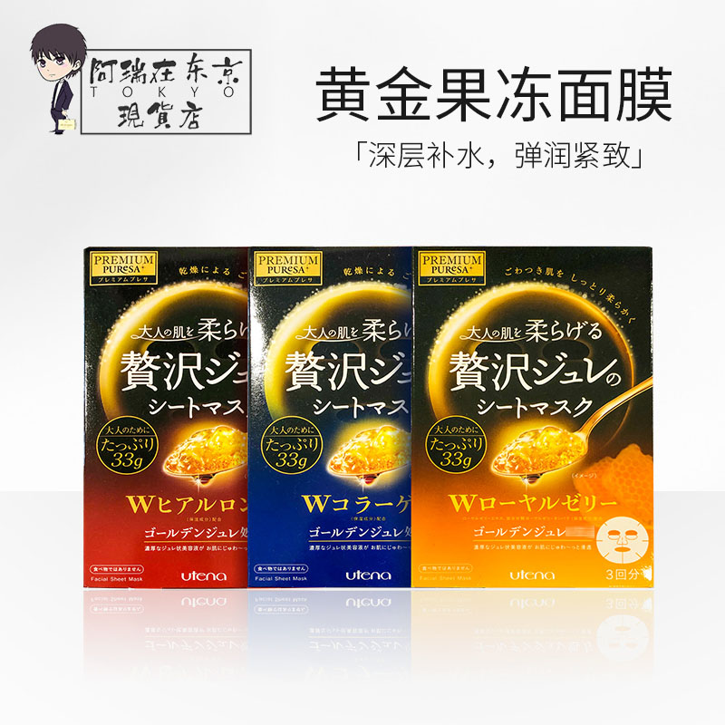 日本直邮UTENA佑天兰面膜黄金果冻面膜胶原蛋白补水保湿3片x3正品
