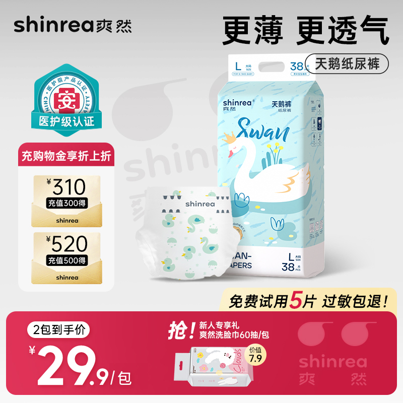 爽然天鹅纸尿裤S-XXXXL超薄透气拉拉裤宝宝尿不湿婴儿官方旗舰店