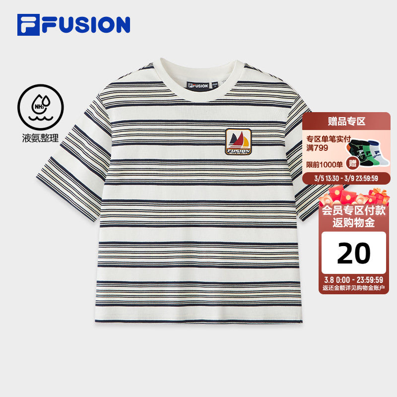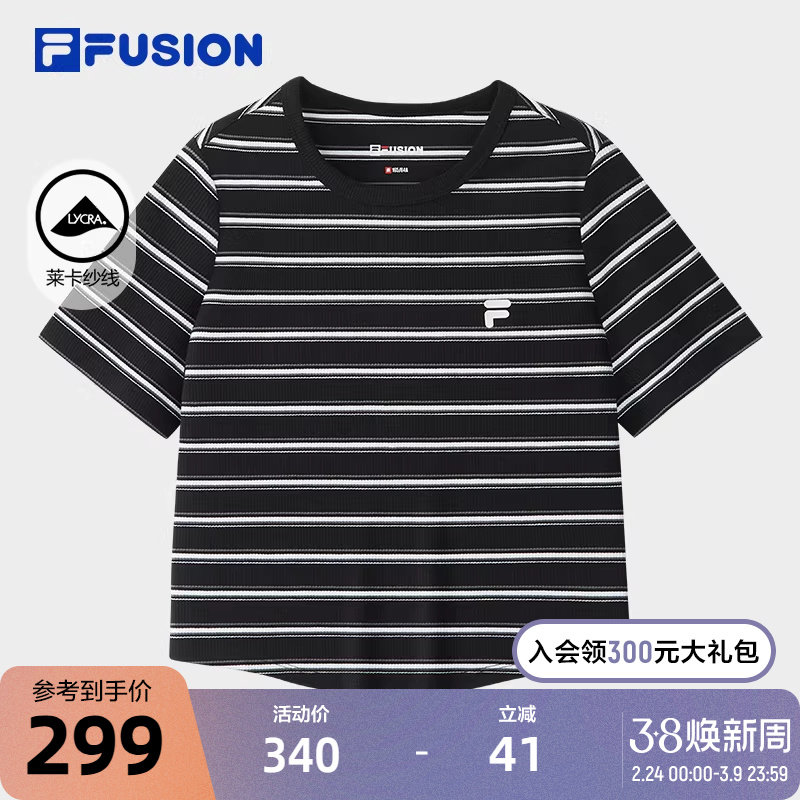 FILA FUSION斐乐潮牌女子针织短袖衫2026夏季新款纯棉宽松条纹T恤