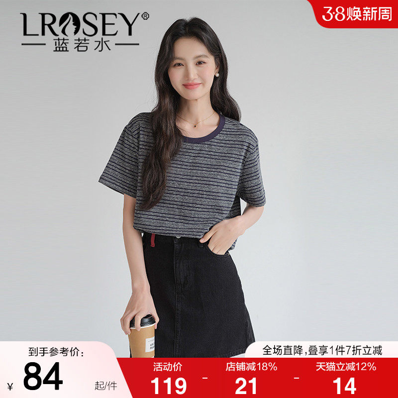 圆领条纹t恤女短袖纯棉宽松显瘦夏季2026年新款半袖百搭体恤上衣