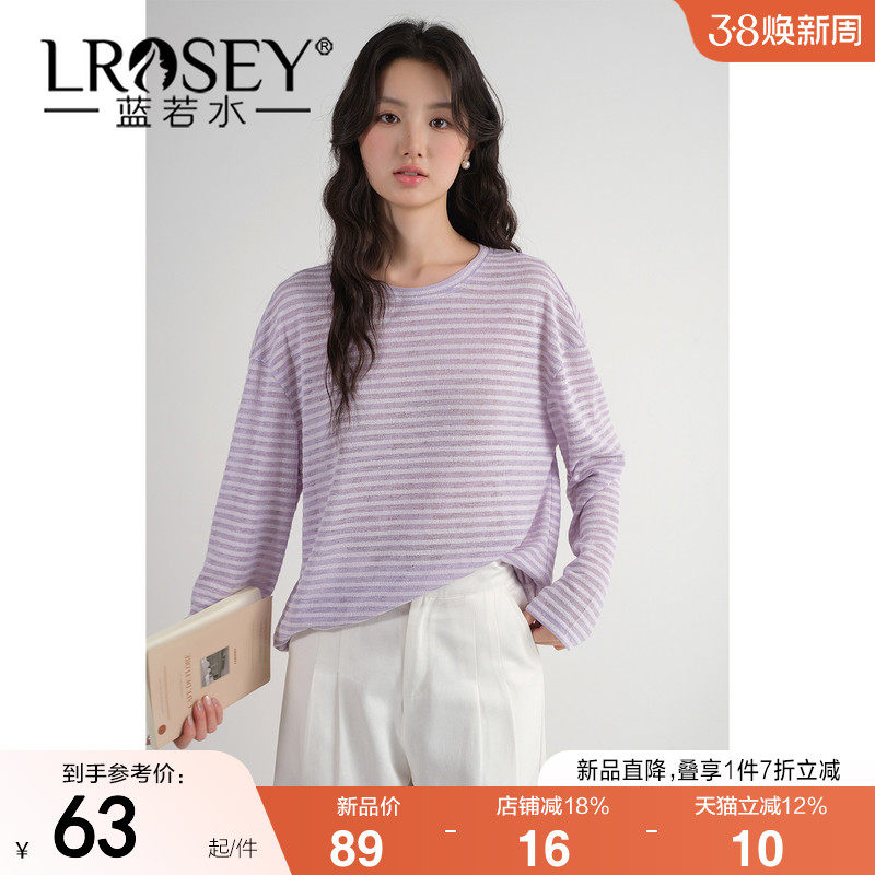 蓝若水大码女装2026春装新款条纹T恤防晒衫罩衫胖MM宽松上衣