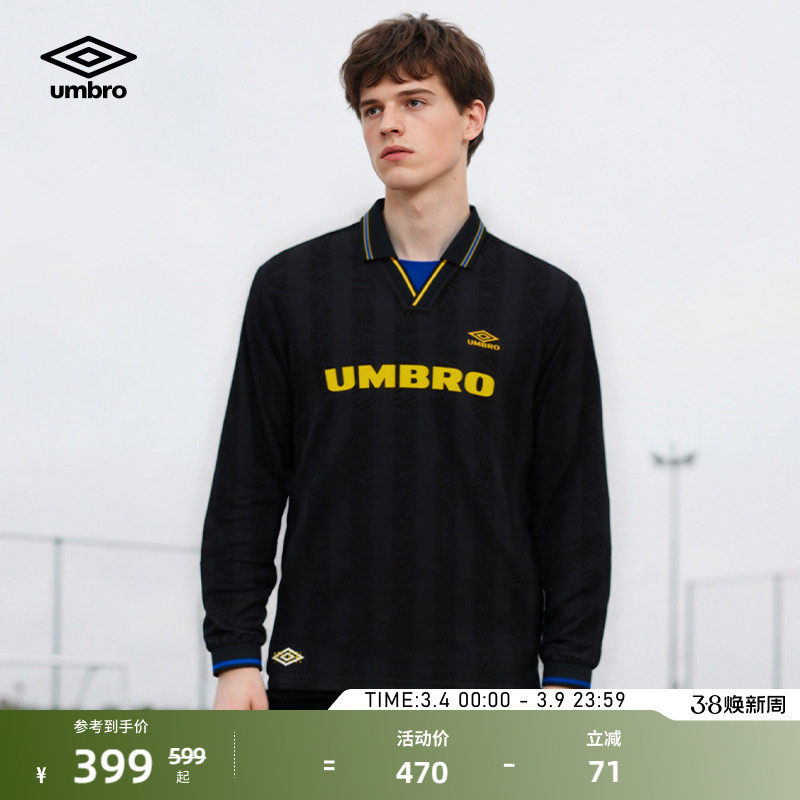 【欧文同款】umbro茵宝运动长袖POLO衫男女同款复刻球衣条纹T恤衫