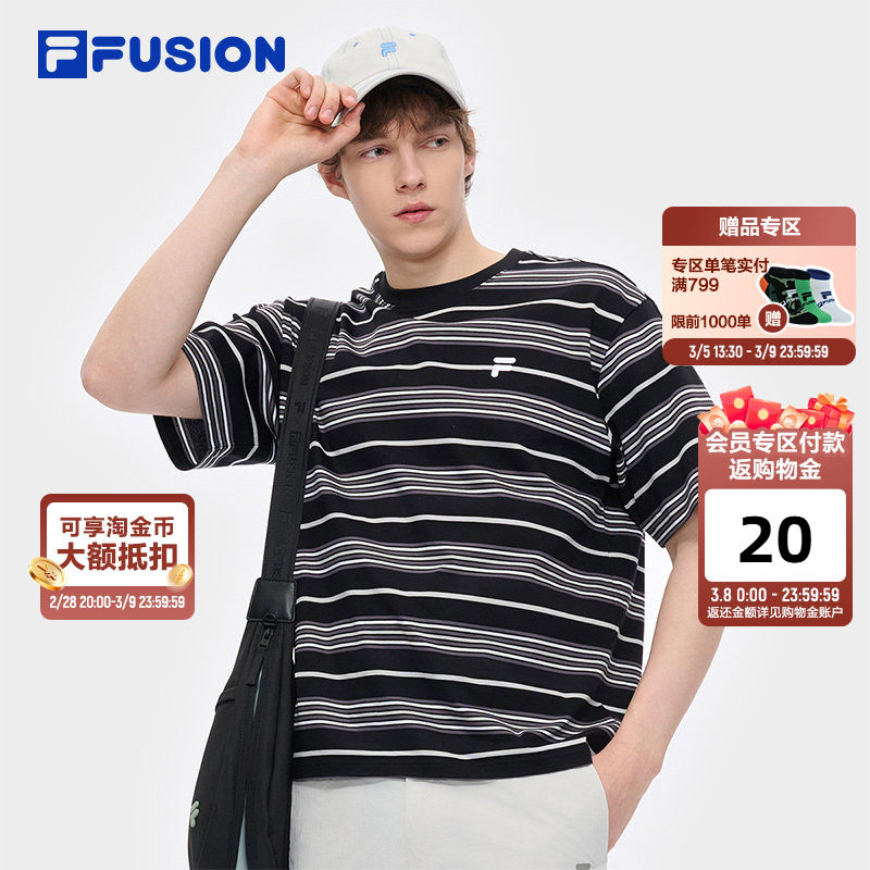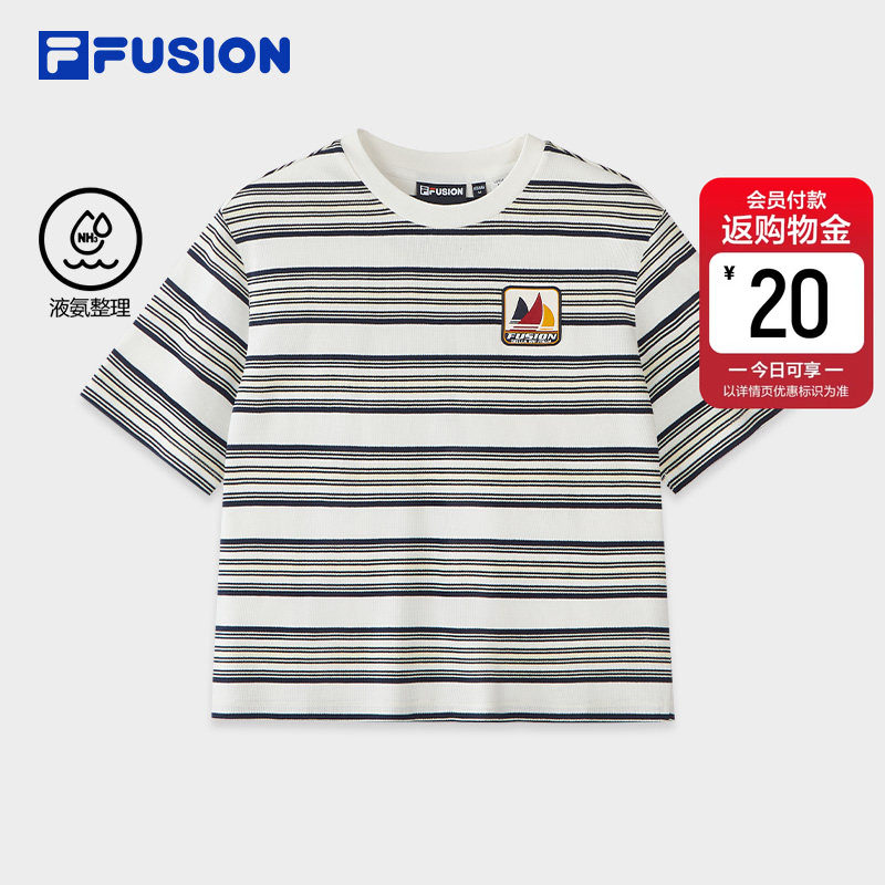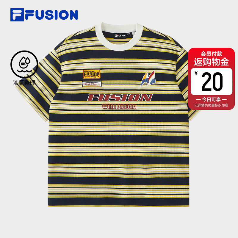 FILA FUSION斐乐潮牌男子短袖夏季条纹T恤休闲百搭宽松半袖上衣女