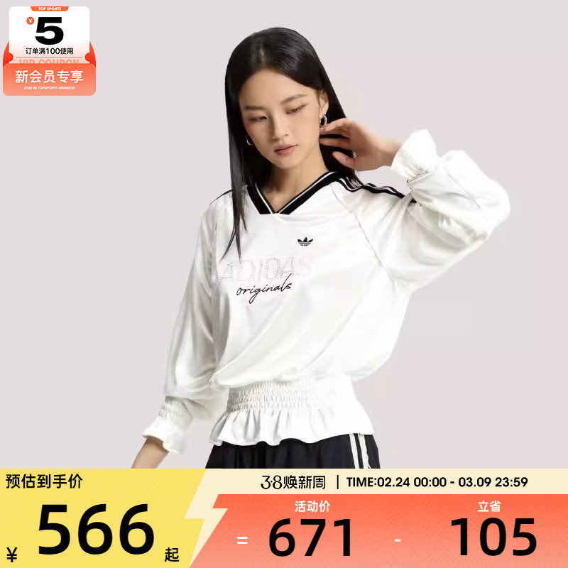 adidas阿迪达斯三叶草女子三条纹抽褶宽松休闲长袖球衣T恤KS2879