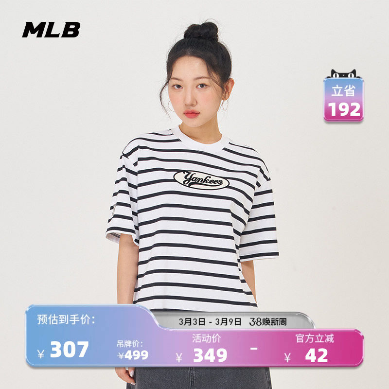 【自营】MLB短袖男女装新款情侣条纹T恤时尚半袖运动服3ATSB3033