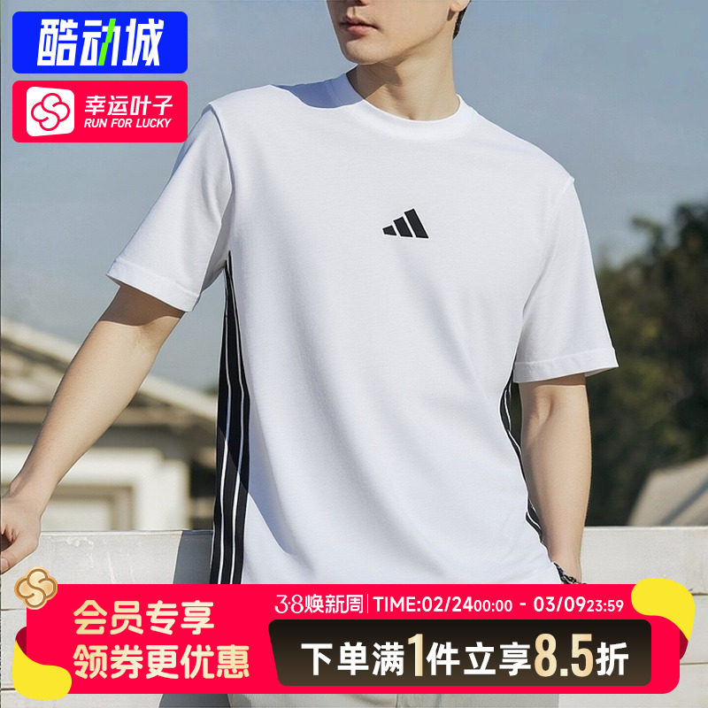 阿迪达斯纯棉短袖男装春夏新款透气运动半袖男士三条纹T恤JY8563