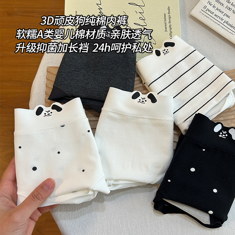 "5条装" 可爱少女小狗卡通纯棉舒适透气三角内裤组合女士内裤