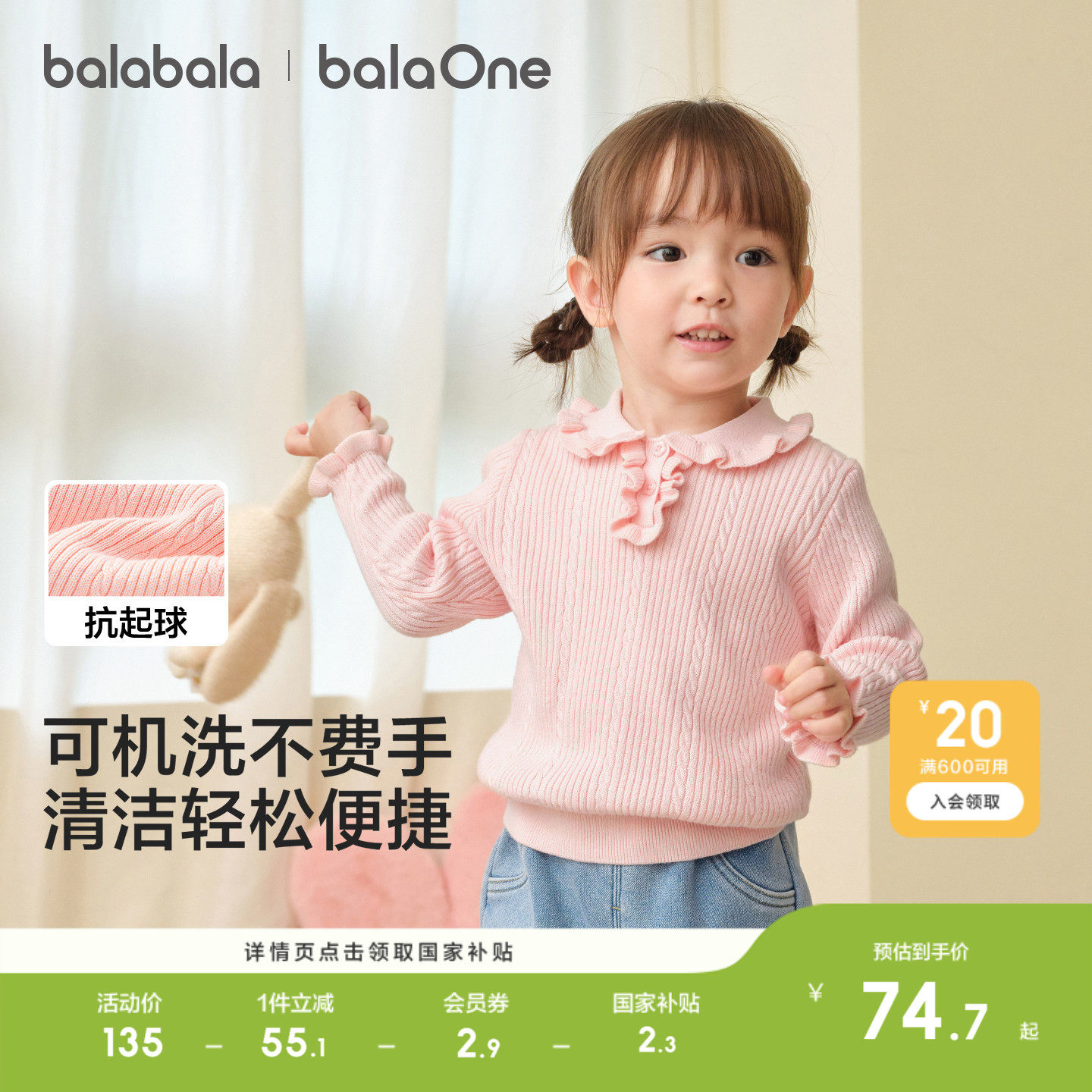巴拉巴拉童装儿童毛衣女童2026新款秋冬装宝宝套头针织衫纯色上衣