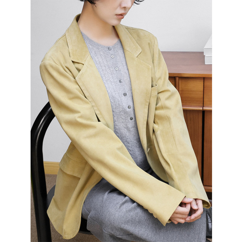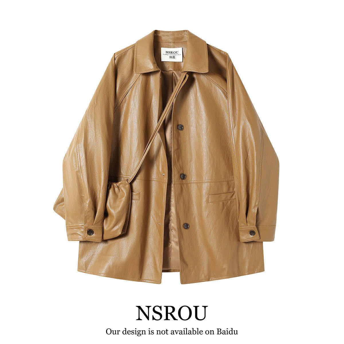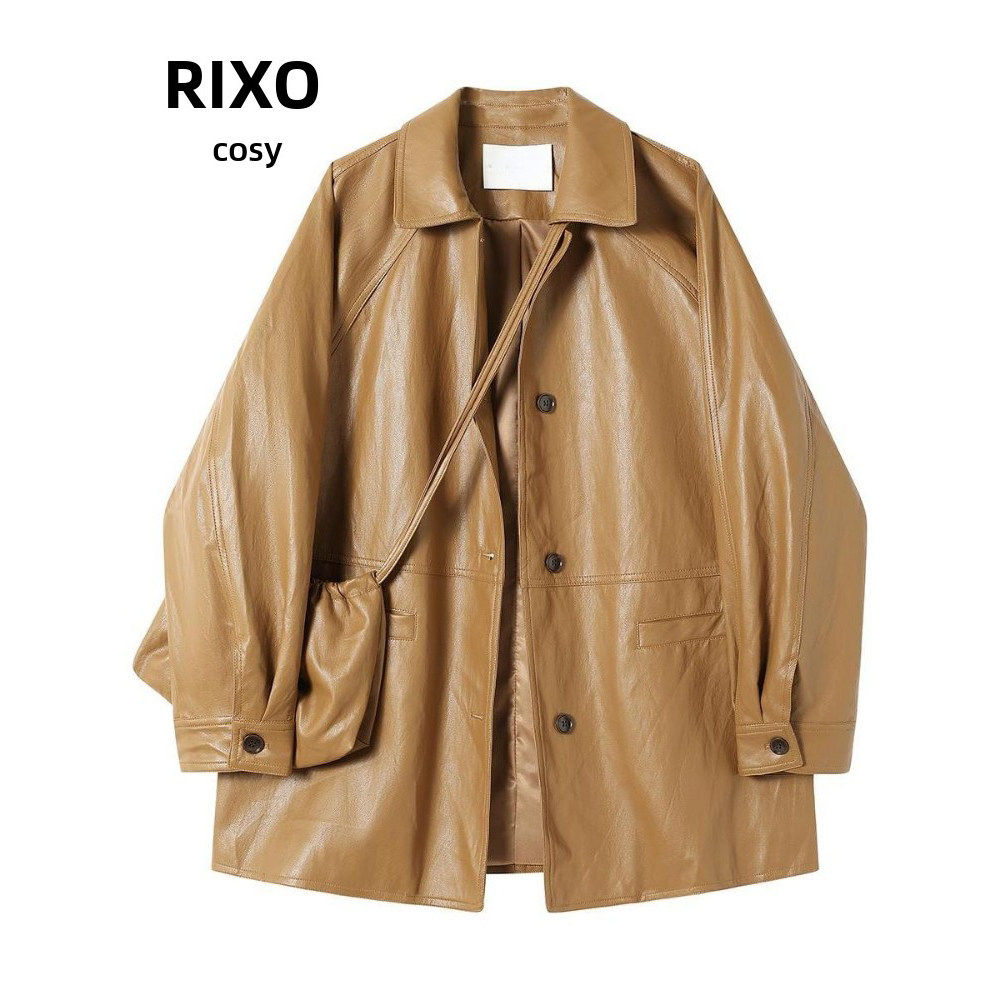洛边 【精神抖擞】后扣设计柔软环保皮衣西装秋冬新款复古外套女