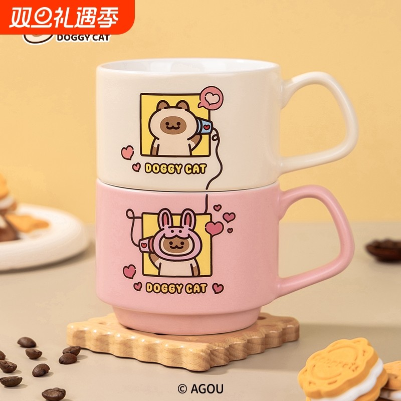 小猫阿狗原创正版马克杯套装陶瓷叠叠杯情侣杯咖啡泡茶办公室礼物