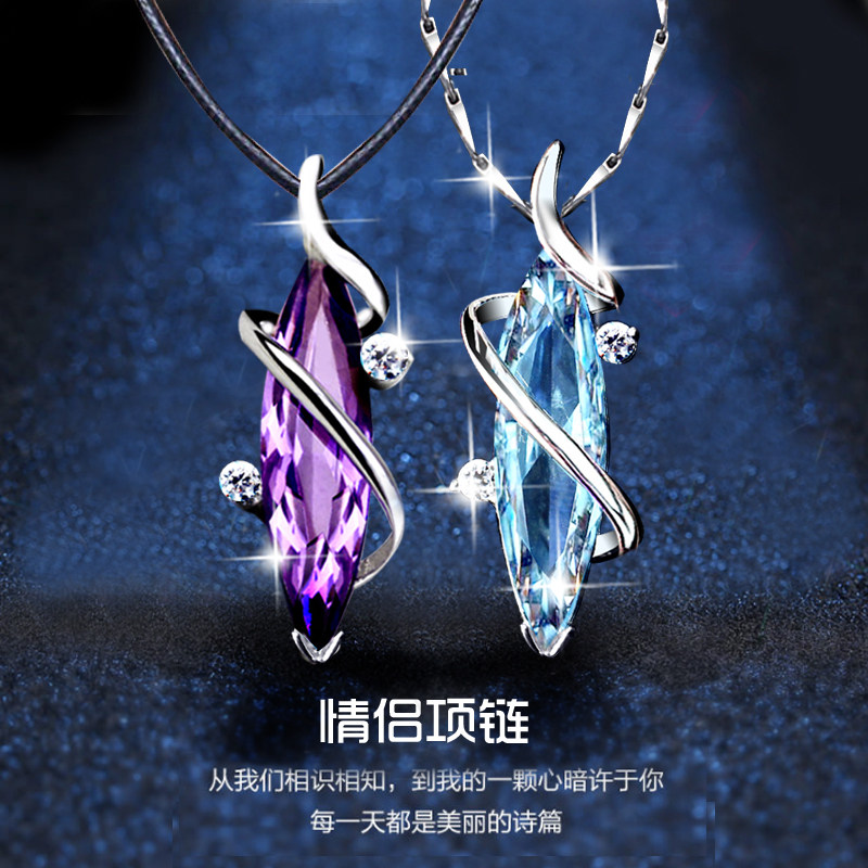 情侣款纯银水晶项链男女一对吊坠2023年新款爆款异地恋生日礼物