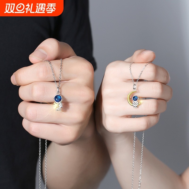 日月纯银情侣项链磁铁相吸一对投影私人定制吊坠毕业季告白送礼物