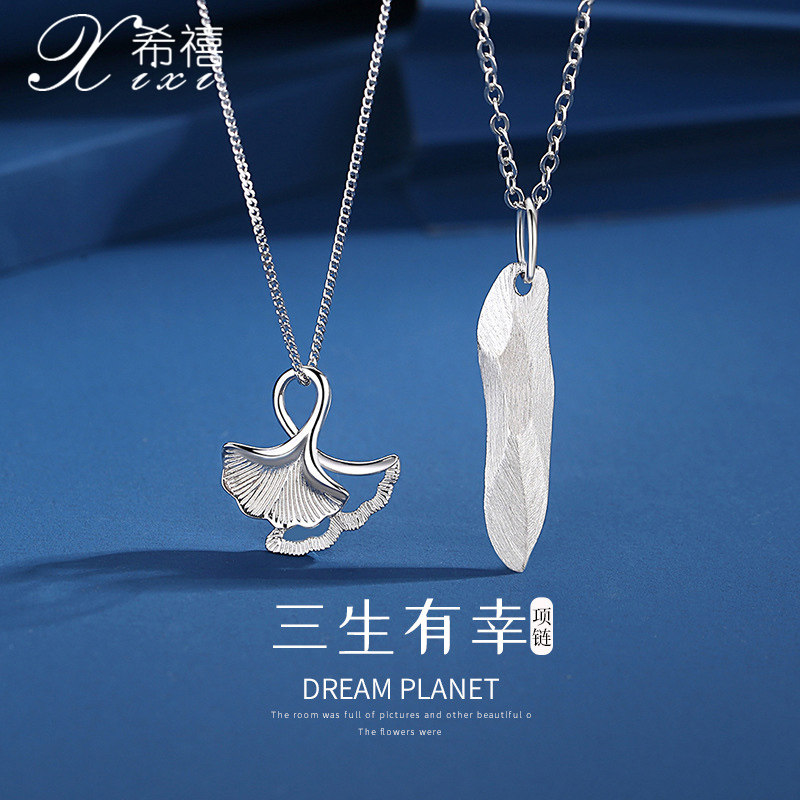 s925纯银三生有杏情侣项链一对男女款银杏叶吊坠异地情人节礼物女