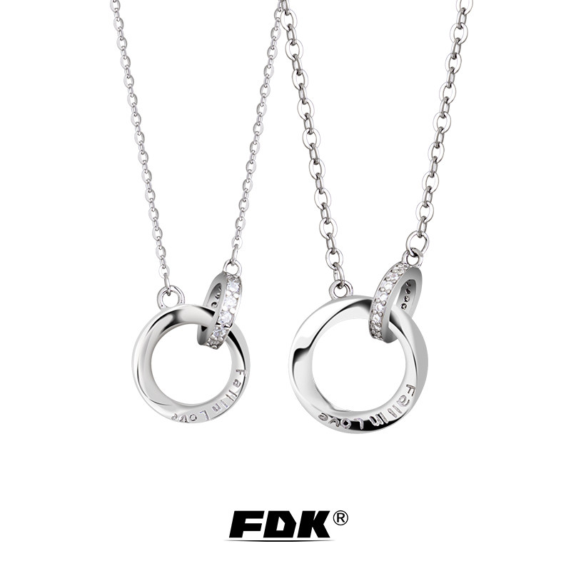 S999足银情侣项链一对男女纯银戒指吊坠简约锁骨链学生刻字送女友