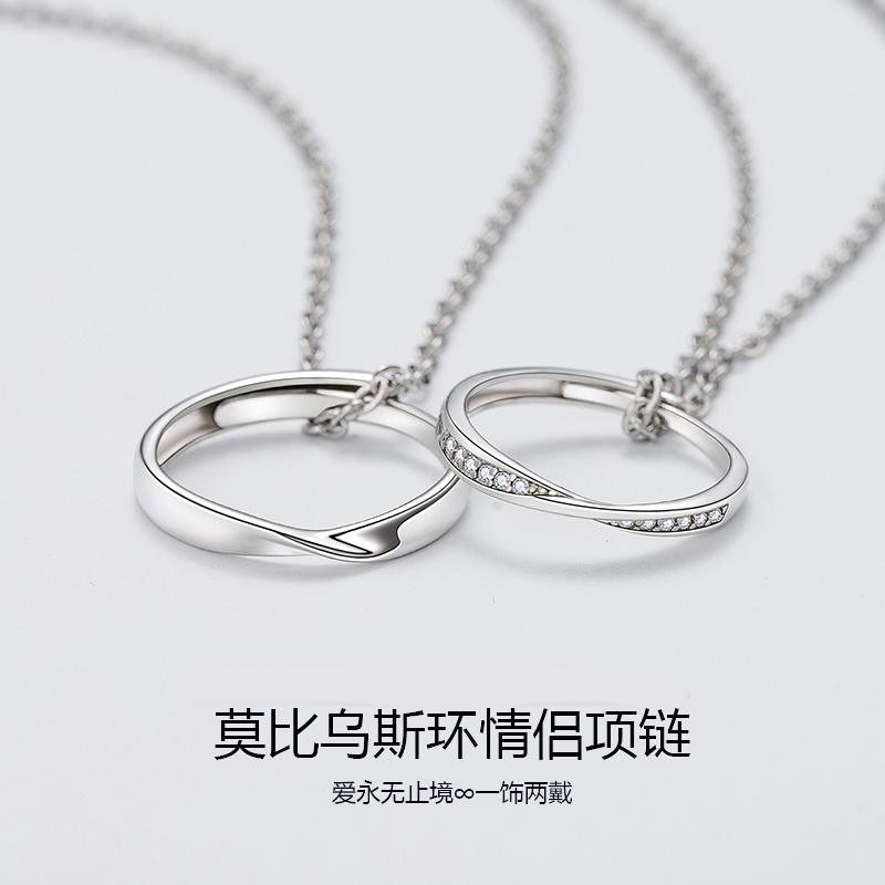 莫比乌斯环情侣项链一对纯银吊坠女银饰轻奢颈链男高级情人节礼物
