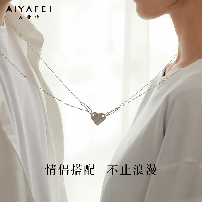 爱心拼接情侣项链一对纯银小众原创设计吊坠轻奢简约锁骨链送女友