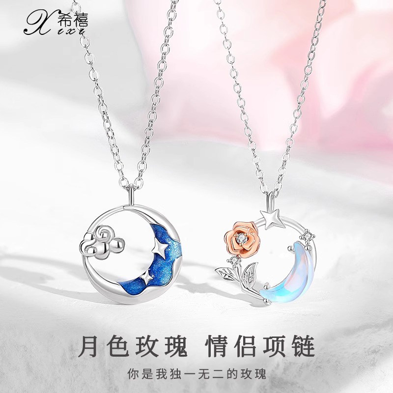 月色玫瑰纯银情侣项链一对情侣款女生小众高级感生日礼物送男女友