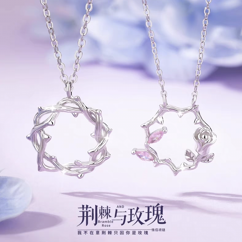 纯银荆棘玫瑰情侣项链一对男女2024新款夏异地恋纪念日情人节礼物