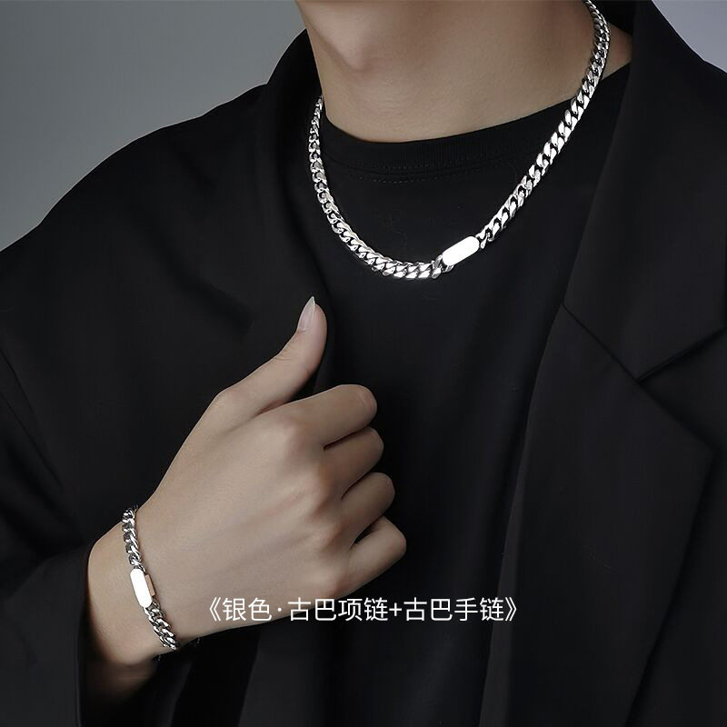 古巴项链男纯银情侣一对欧美嘻哈潮牌简约粗链条手饰朋克霸气手链