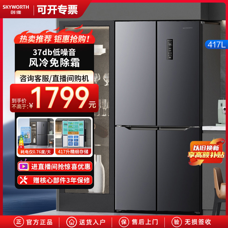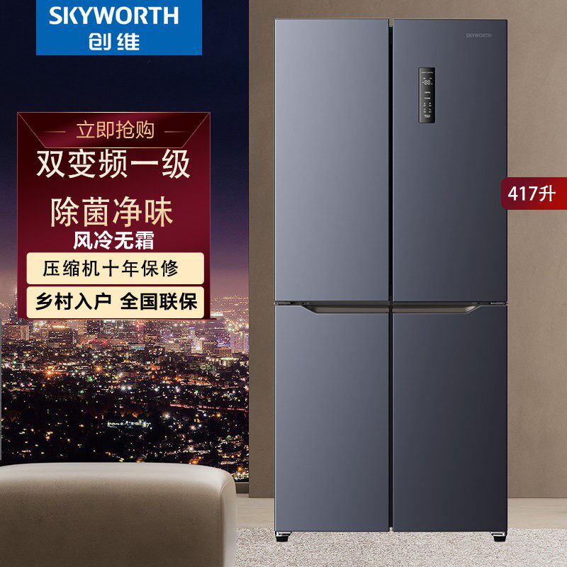 创维417升变频除菌净味1级能效除菌省电冰箱十字四开门冷藏冻家用