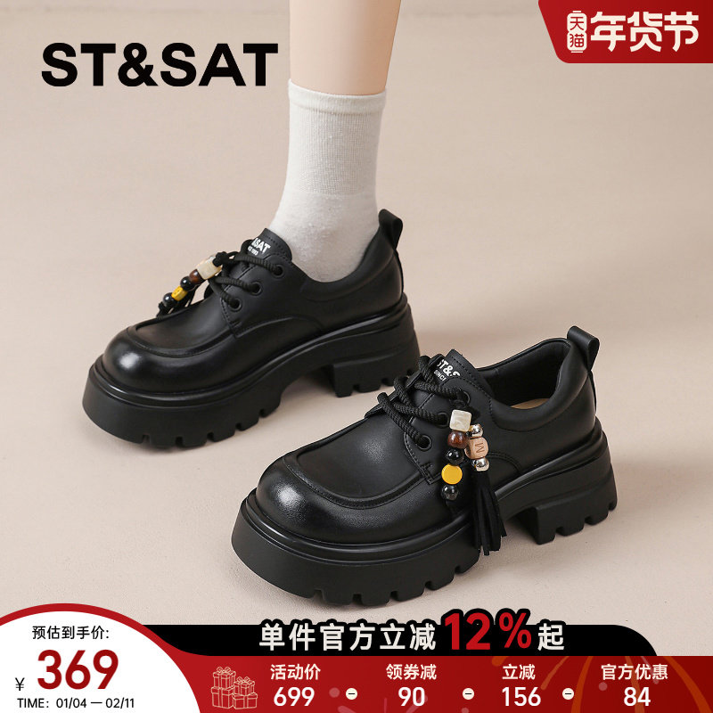 星期六厚底乐福鞋女2026新款女深口粗跟单鞋英伦风小皮鞋通勤女鞋