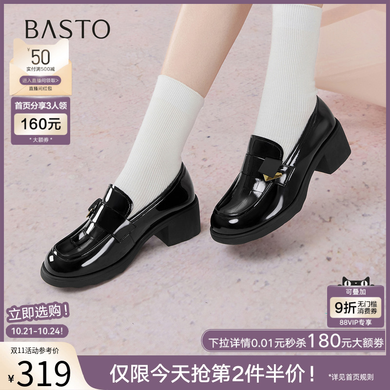 百思图2025秋季商场新款英伦乐福鞋通勤粗跟女深口单鞋O8138CA5