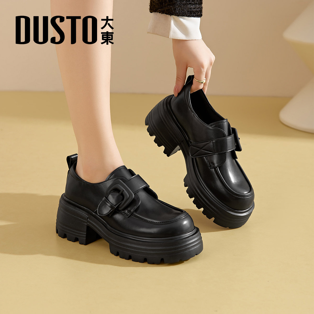 大东黑色乐福鞋女2026新款秋冬深口粗跟单鞋厚底增高英伦风小皮鞋