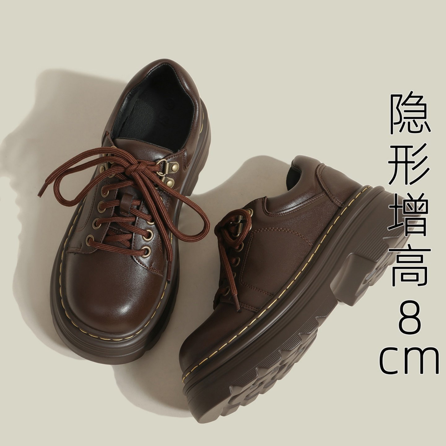 英伦风百搭深口粗跟单鞋2025新款春秋小个子厚底乐福鞋系带小皮鞋