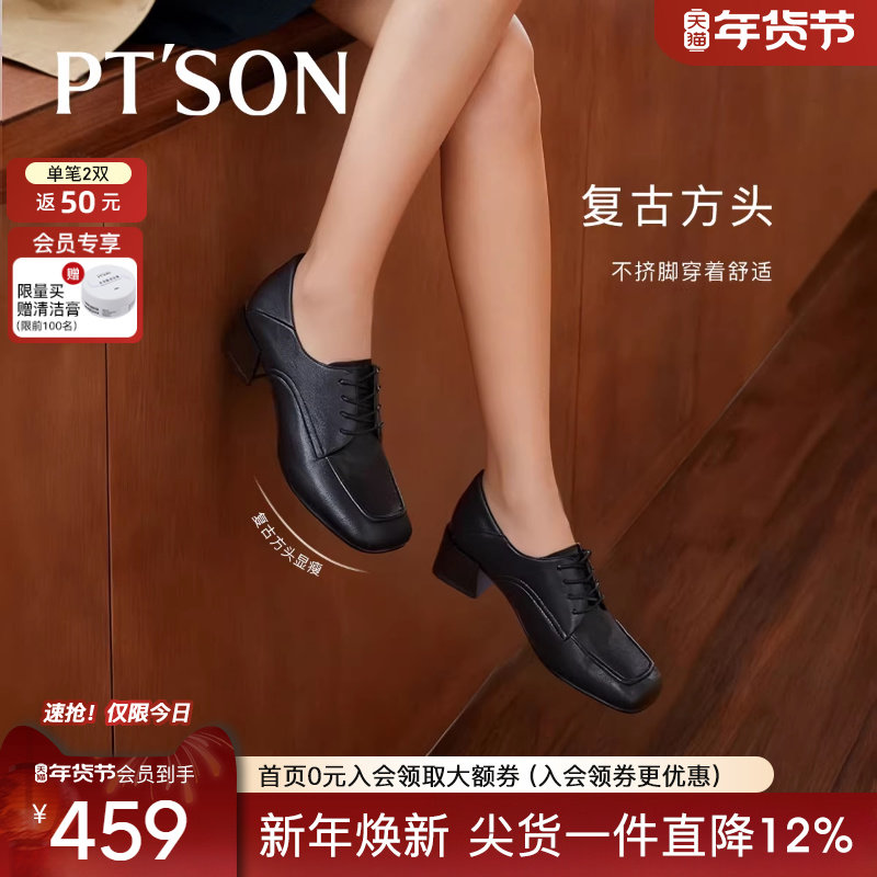 【马上来福】百思图2026春季商场新款乐福鞋小皮鞋粗跟女深口单鞋