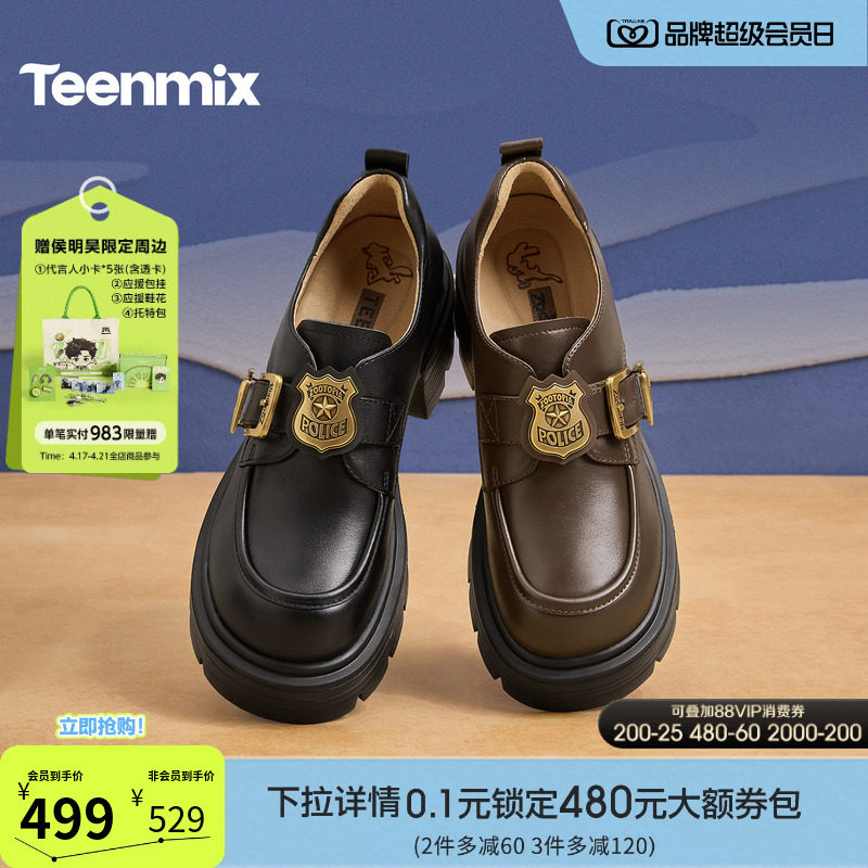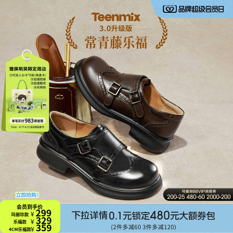 天美意布洛克札记厚底英伦常青藤乐福鞋单鞋女软底小皮鞋2026新款