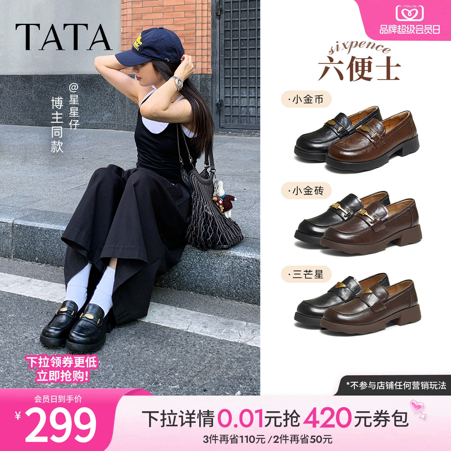 张昕懿同款TATA他她时光序曲真皮乐福鞋小皮鞋女厚底单鞋JZZ01AM6