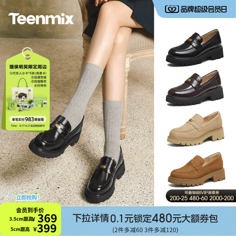 天美意厚底学院英伦乐福鞋复古单鞋女一脚蹬软底小皮鞋2026春新款