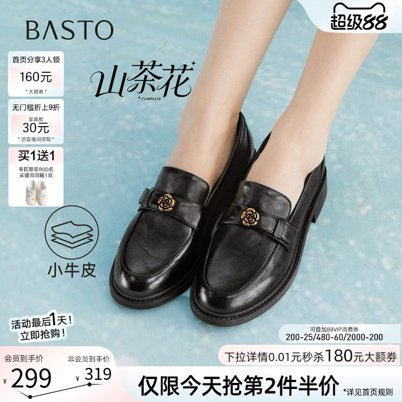 【山茶花】百思图2026春新款厚底乐福鞋小皮鞋粗跟女单鞋WWE55AA6