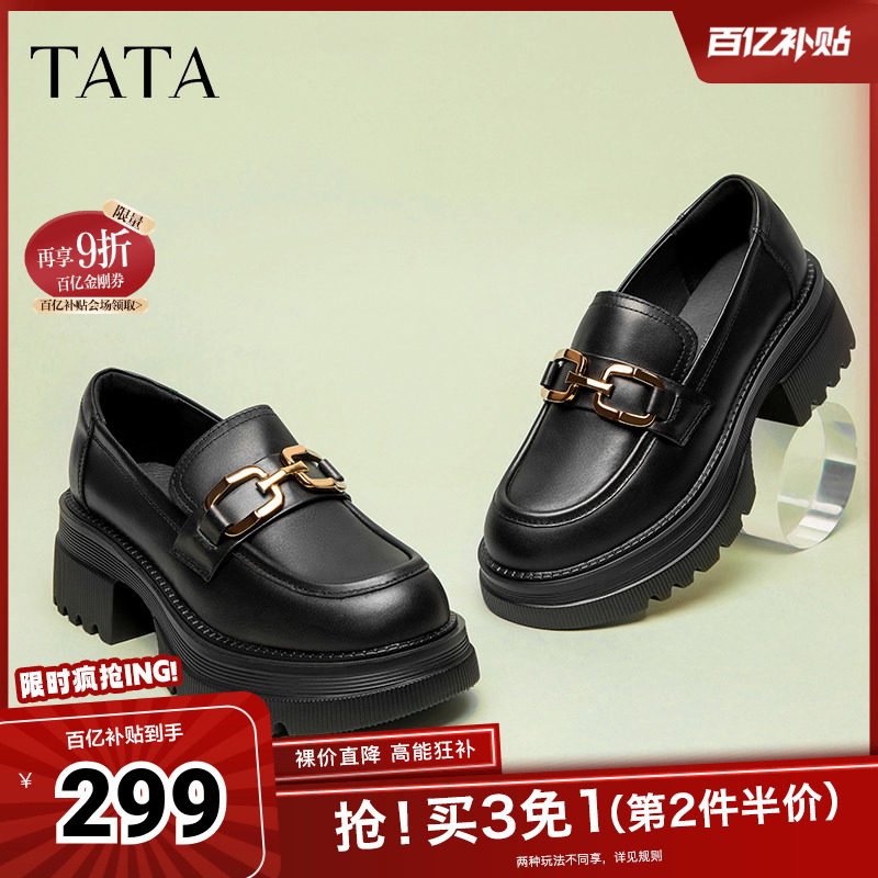 Tata他她高跟乐福鞋女厚底小皮鞋英伦风单鞋秋季商场奥莱GOK02AA4
