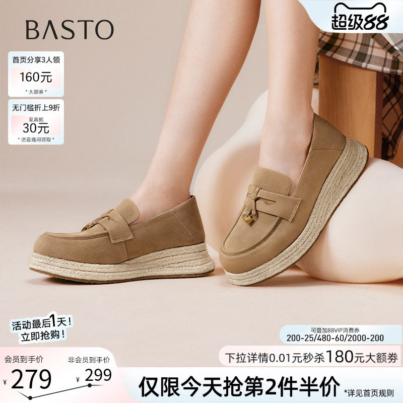 百思图26春新款一脚蹬草编渔夫鞋厚底乐福鞋女松糕鞋单鞋B0515CA5