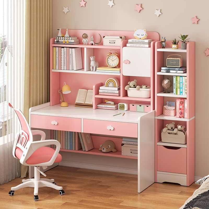 儿童书桌书架组合一体桌实木学习桌女孩家用中小学生写字桌椅男孩