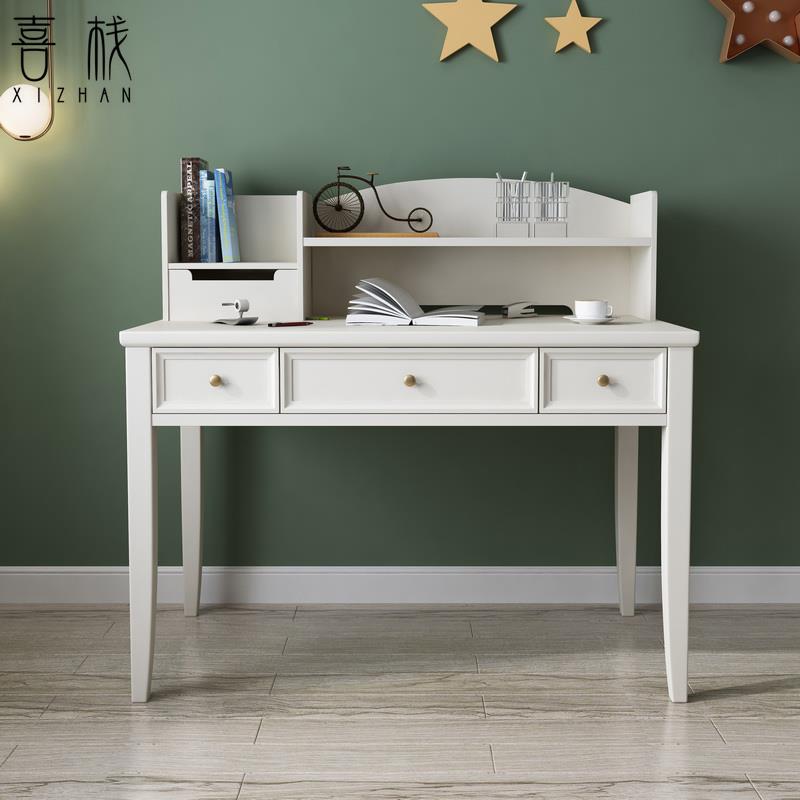 美式乡村实木书桌椅白蜡木儿童书桌书架组合双人一体电脑桌办公桌