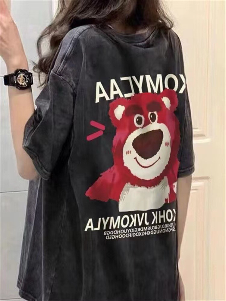 2025夏季新款韩版宽松休闲百搭圆领短袖T恤女学生上衣ins潮草莓熊
