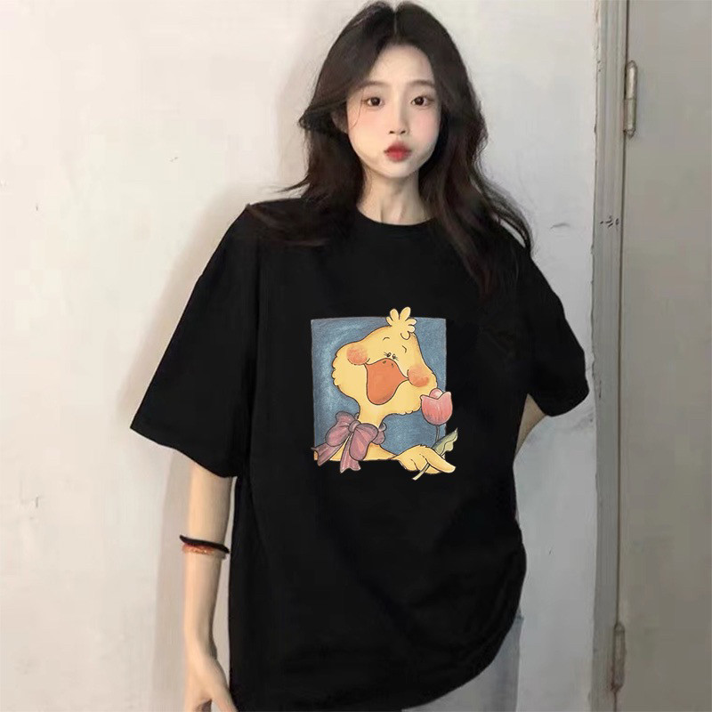 小黄鸭2025夏季新款韩版宽松休闲百搭圆领短袖T恤女学生上衣ins潮