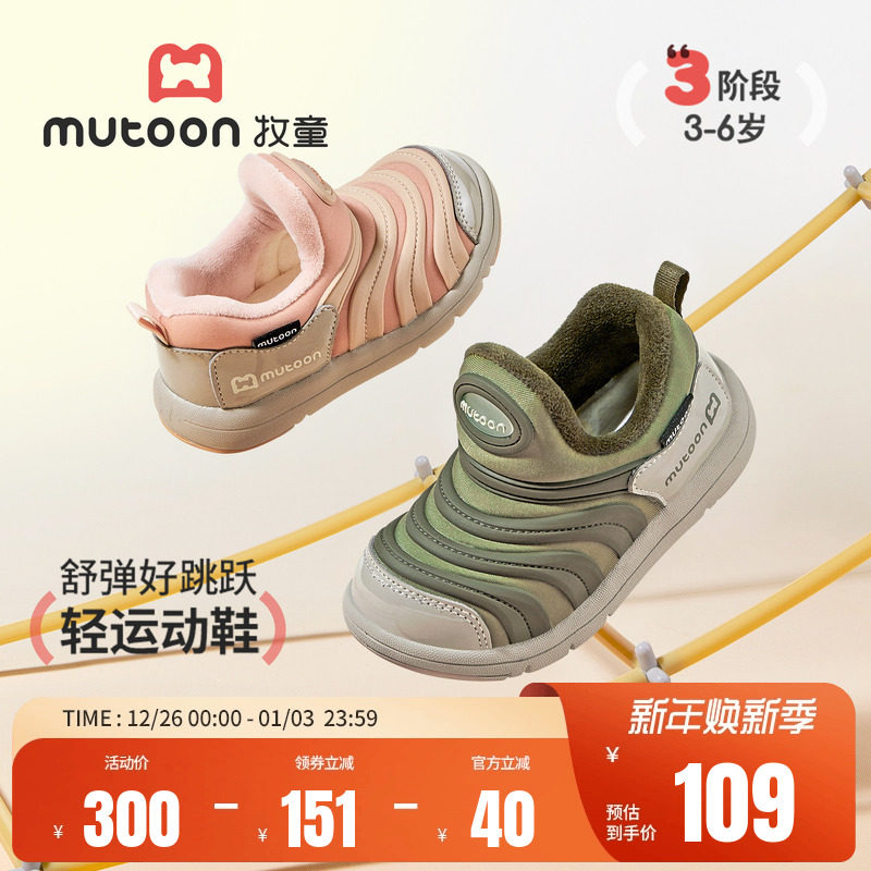 UKIUKI云感底毛毛虫童鞋超纤皮面加绒保暖透气超轻减震回弹运动鞋