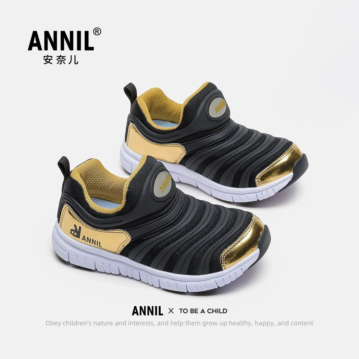 安奈儿男童毛毛虫鞋子2026新款春秋大童男孩轻便儿童一脚蹬运动鞋